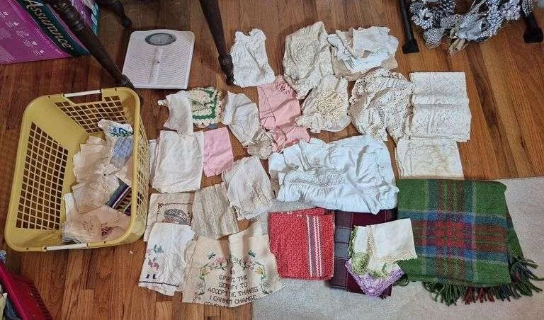 2007 Hankies, napkins, doilies, baby clothes, scarves, blanket, Etc