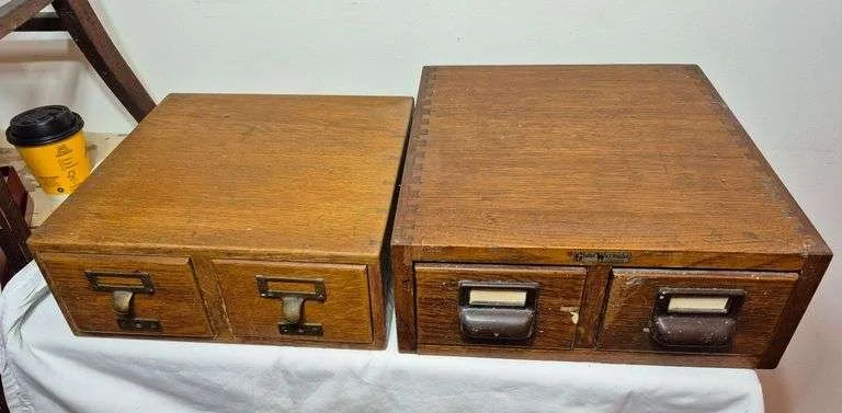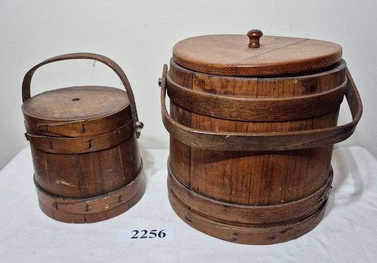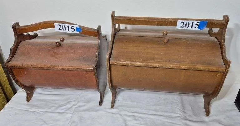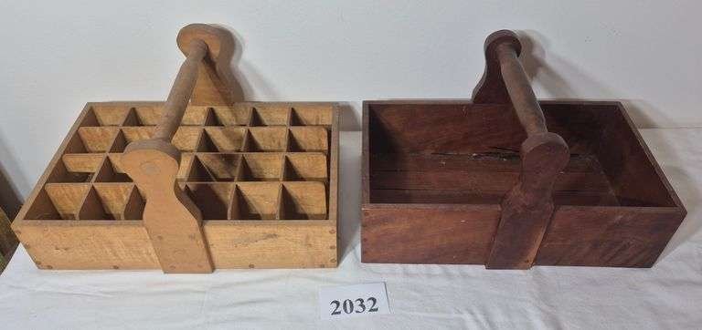 2032 Two small wood totes, one with dividers