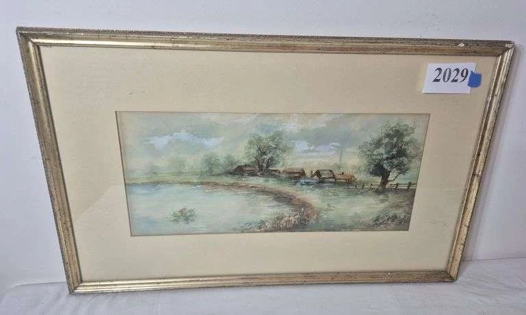 2029 Framed antique watercolor painting