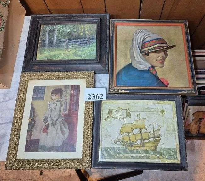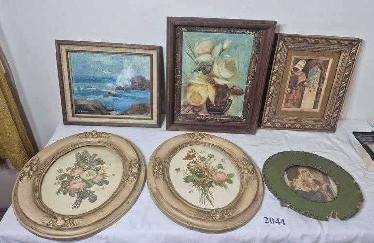 2044 Framed paintings, pair of framed prints in oval frames, Etc