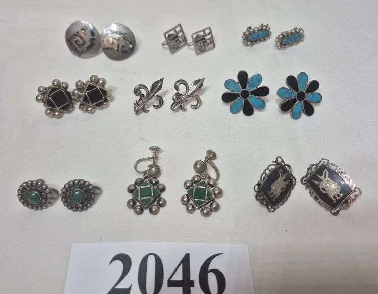 2046 Nine pairs of Sterling Silver clip earrings