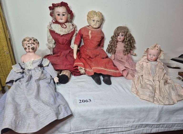 2063 Antique dolls including German doll with Metal Head