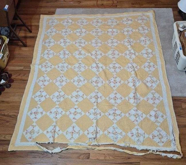2066 Antique yellow hand-stitched quilt
