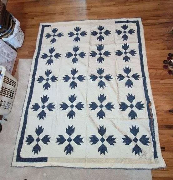 2075 Antique blue hand-stitched quilt