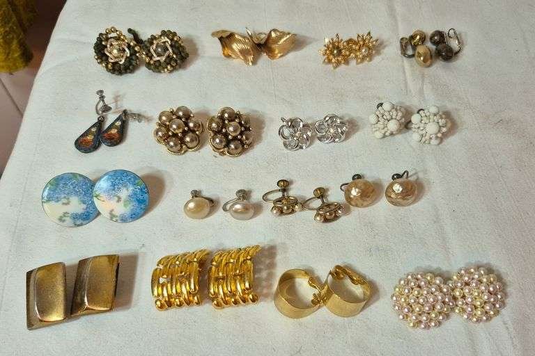 2088 Pairs of costume jewelry clip earrings and a box of orphaned single earrings