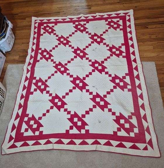 2093 Antique hand-stitched red quilt