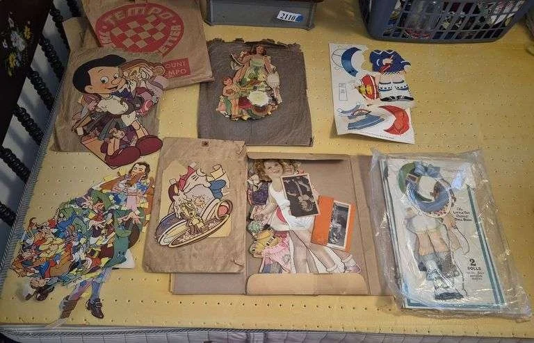 2054 Antique doll trunk, doll, doll clothes, Etc