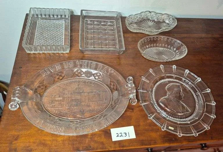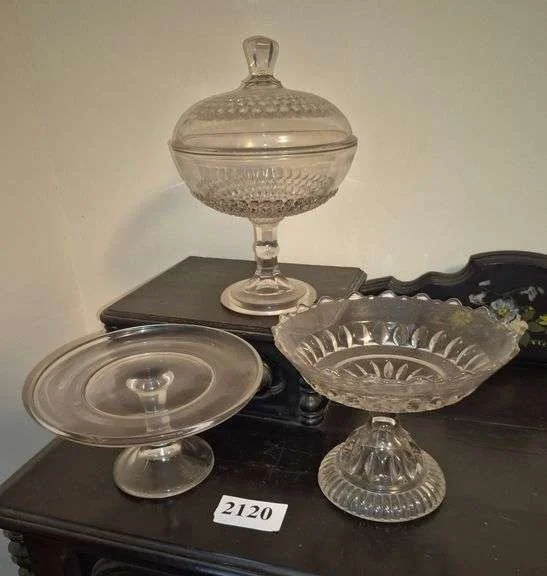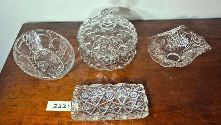 2273 Pattern glass bowls, candle holders, apple pattern bowls, Etc