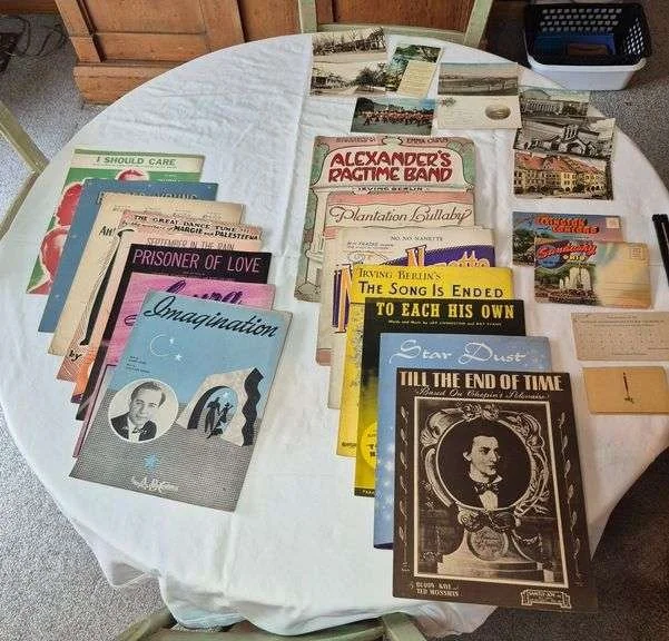 2312 Vintage sheet music, postcards and greeting cards