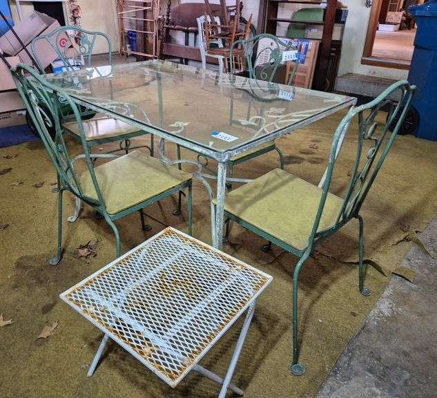 2333 Wrought iron patio table with glass top, with four chairs