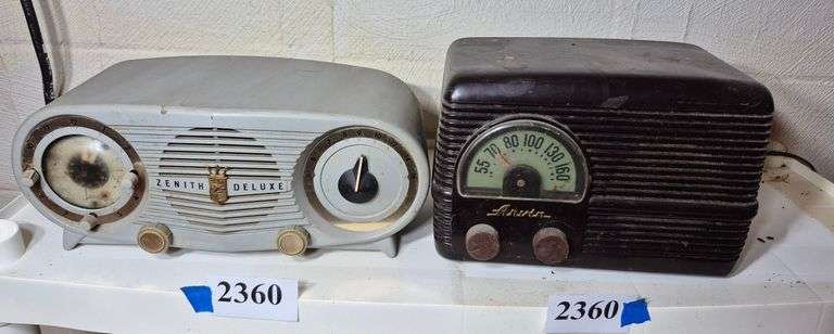 2360 Vintage Zenith clock radio, vintage Arvin radio