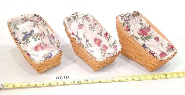 6130 (3) Longaberger baskets with protectors and liners