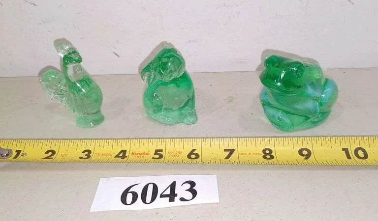 6043 Green Fenton ? frog, bunny, and rooster figurines