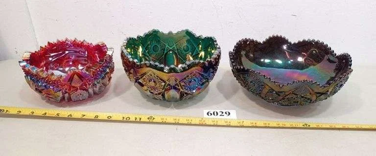 6029 Three carnival glass bowls