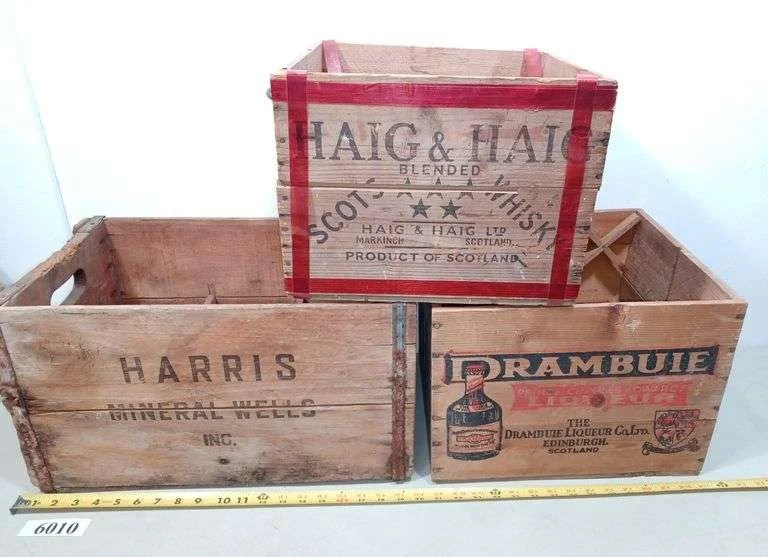 6010 (3) wood liquor and mineral water crates