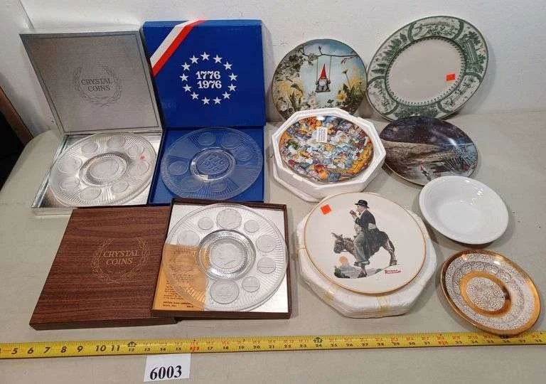 6003 Crystal coin collector plates in boxes, other collector plates, Fiesta bowl, Etc.