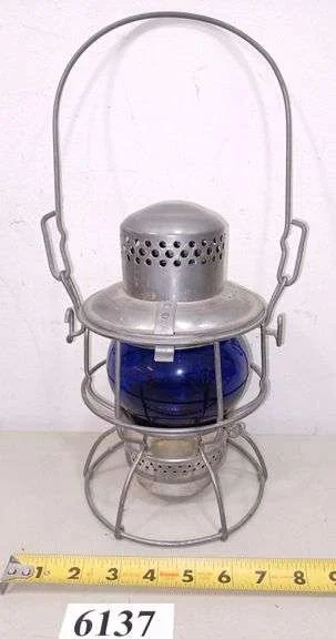 6137 Adlake Kero railroad lantern with cobalt blue globe