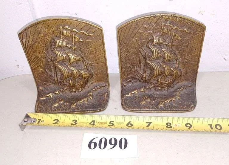 6090 Pair of vintage cast metal ship bookends