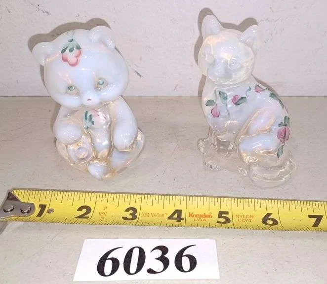 6036 Fenton hand-painted artist signed bear and cat figurines