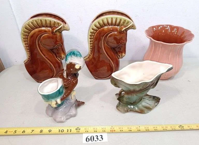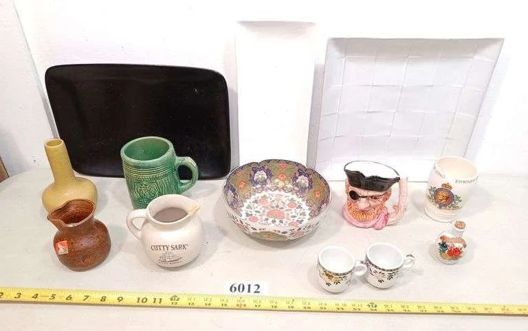 6012 Pottery vases, stoneware mug, Pottery trays, bowl, Cutty Sark pitcher, coronation cup, Etc