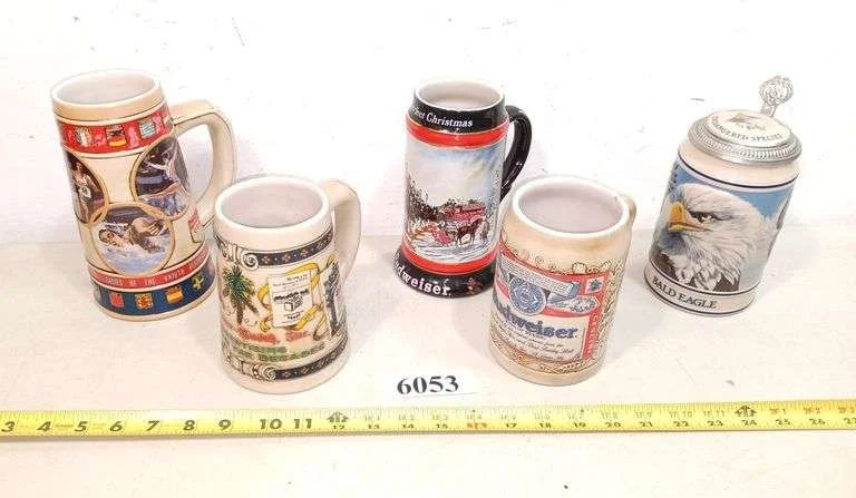 6053 (5) Budweiser and other beer mugs