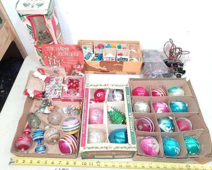 6178 Vintage Christmas ornaments, lights, and decorations