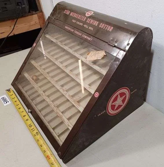 6005 Vintage metal American Thread Company countertop spool cabinet.