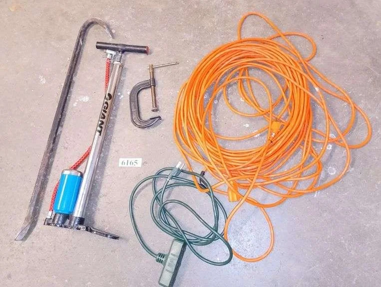 6165 Extension cords, large pry bar, C-clamp, bicycle pump