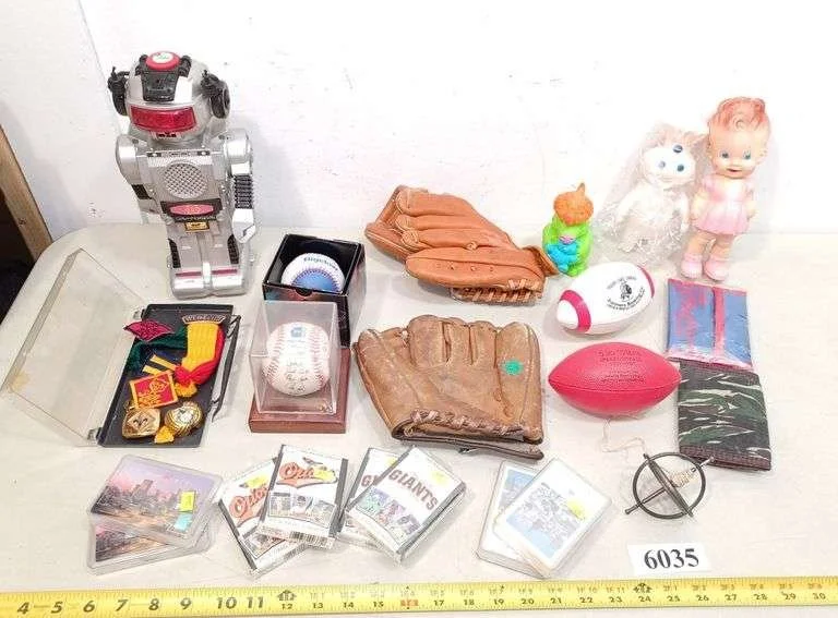 6035 Robot, playing cards, baseballs, Cub Scout items, baseball gloves, Etc