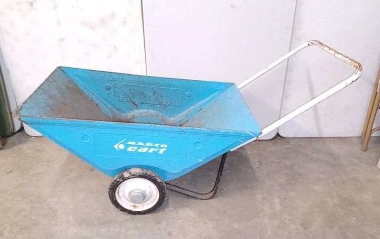 6160 Vintage metal radio cart yard cart