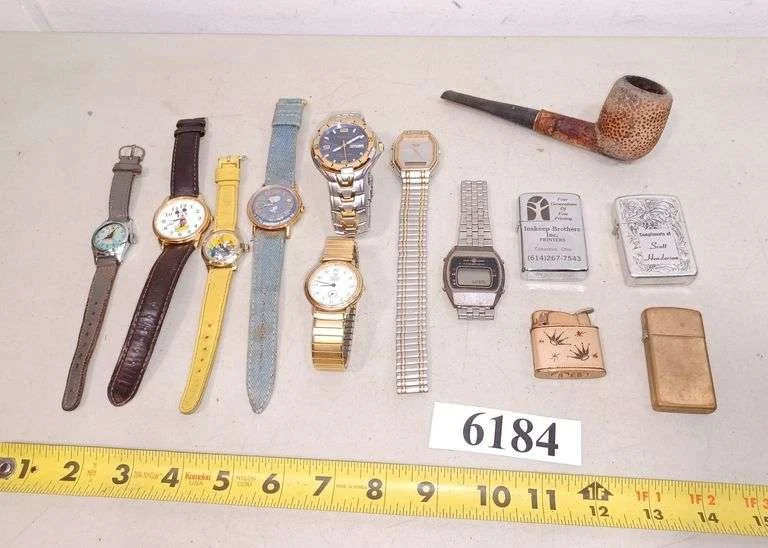 6184 Watches including Mickey Mouse, lighters, pipe