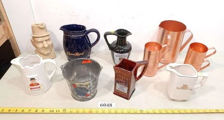 6048 Various liquor advertising pitchers, bucket, Etc
