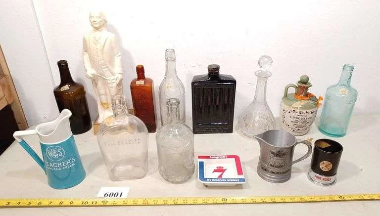 6001 Liquor decanters and other collectible bottles, advertising jugs, ashtray, Etc
