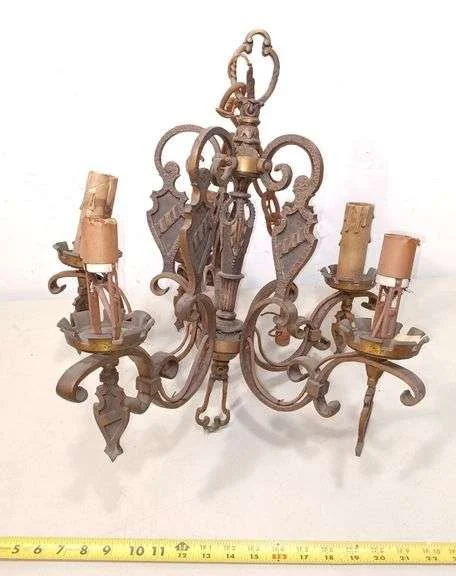 6007 Art Deco cast metal five light hanging Chandelier