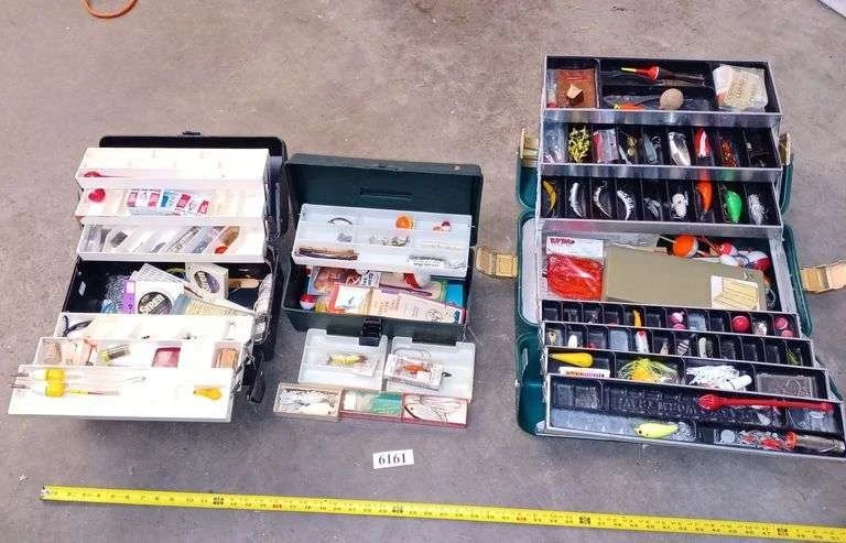 6161 Three tackle boxes full of vintage and modern fishing tackle