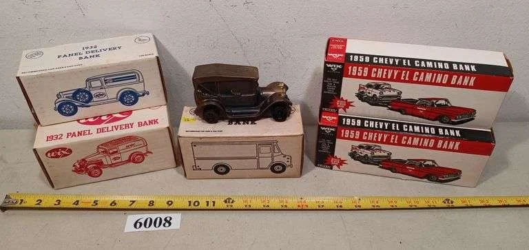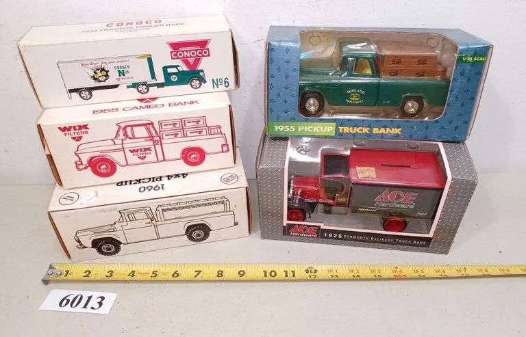 6008 (6) ERTL, Wix, and other die-cast banks, most in boxes