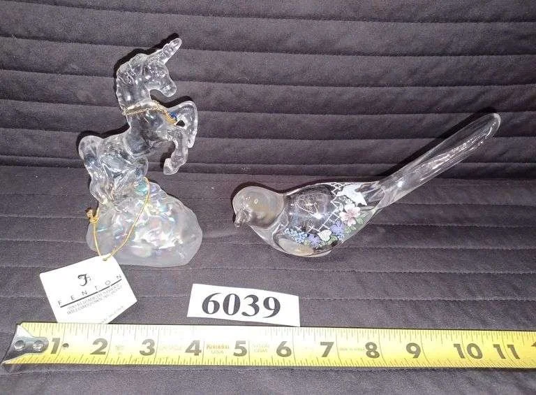 6039 Fenton hand-painted artist signed bird figurine, Fenton unicorn figurine