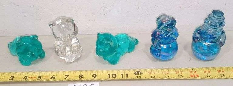 6027 (3) Fenton ? bear figurines, pair of Fenton ? snowman and snow woman figurines