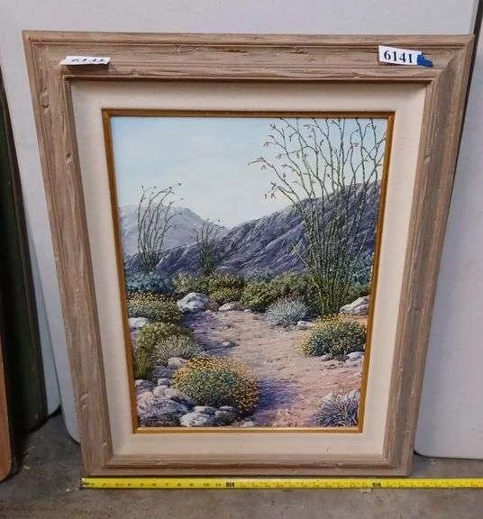 6141 Framed desert scene painting on canvas signed by Mildred Ford