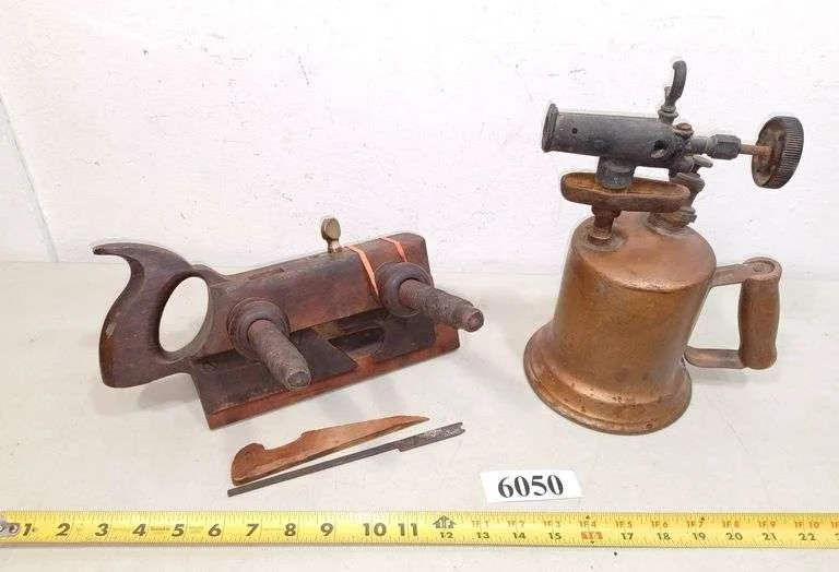 6050 Antique hand plane, antique blowtorch