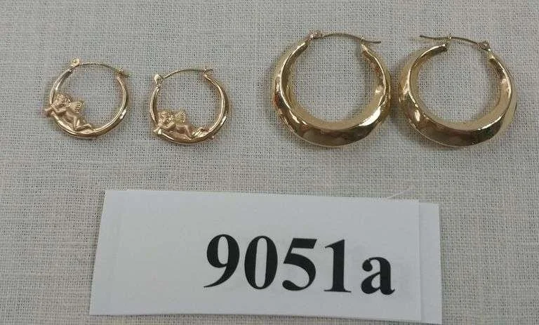 9051a 2 pairs of 14k JCM gold earrings
