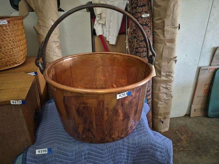 9203 Very large antique copper kettle