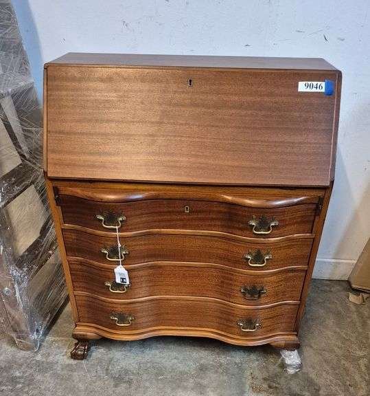 9046 Mahogany Serpentine front drop down desk with ball claw feet
