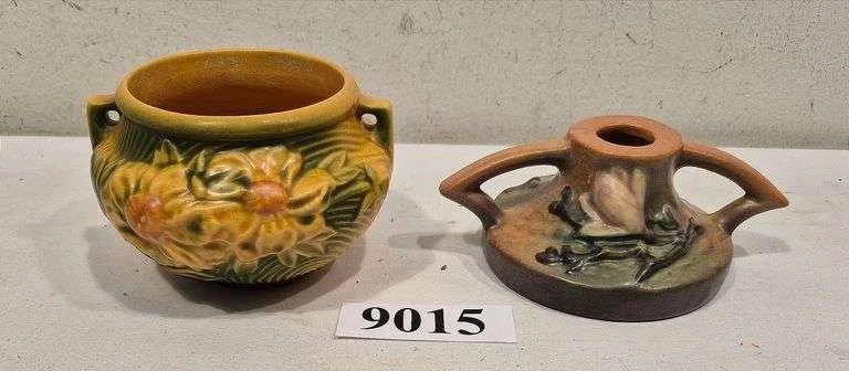 9015 Roseville Pottery Peony Bowl / small planter, Magnolia single candle holder