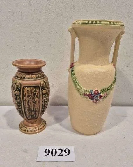 9029 Roseville Pottery Florentine and La Rose vases