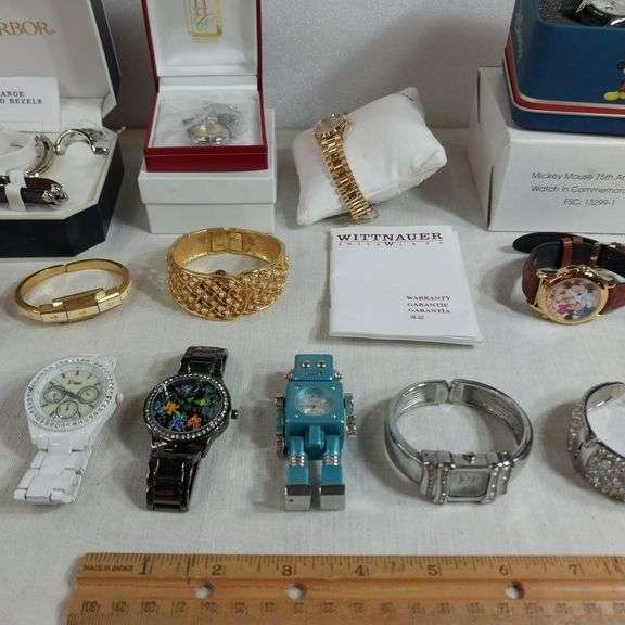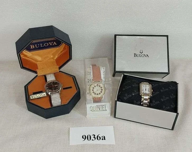9036a Bulova men's watch in box, Bulova ladies watch in box, Quintel Le Watch in case