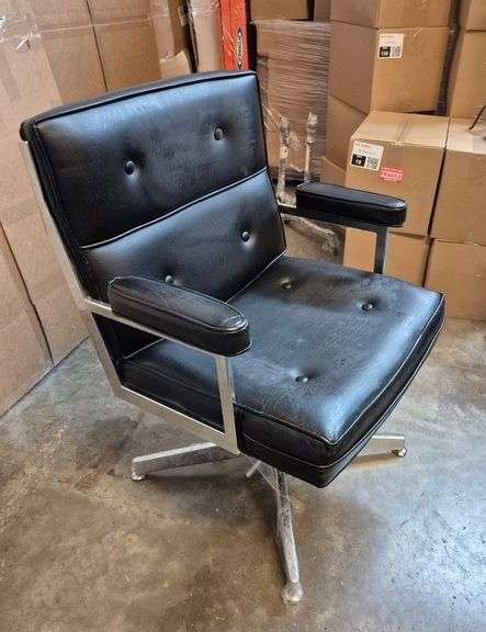 9055 Black and chrome mid-century swivel armchair