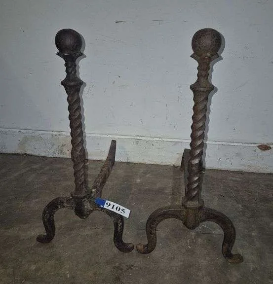 9192 Antique cast iron fireplace log holder dated 1924, unidentified cast iron fireplace piece