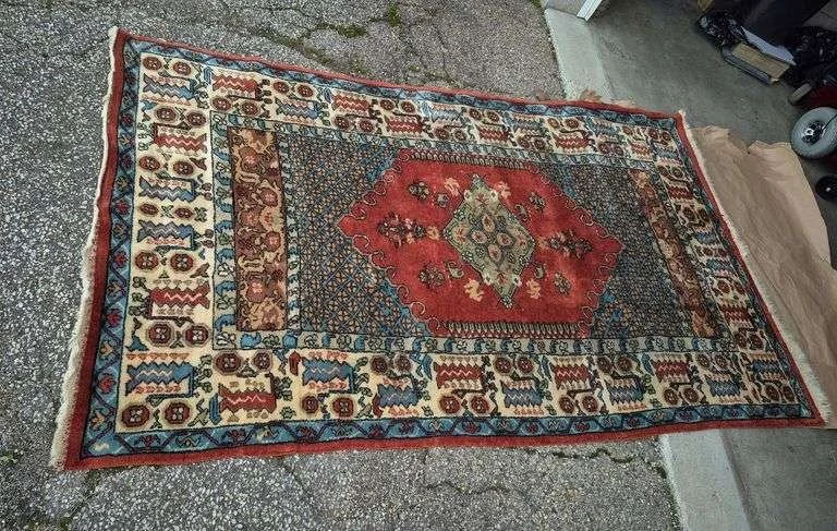 9202 Large room size red and blue rug with pad