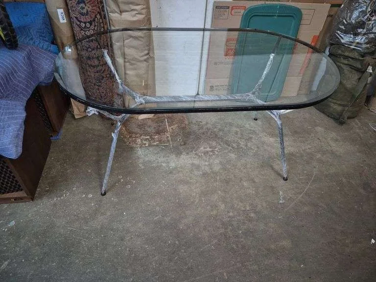 9215 Oval glass top table with black metal base